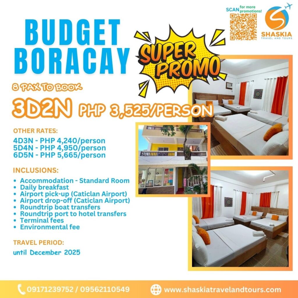 Budget Boracay Boundary in Station 2 & 3 Standard Room - 2 PAX TO BOOK STANDARD ROOM - 3 PAX TO BOOK STANDARD ROOM - 4 PAX TO BOOK STANDARD ROOM - 5 PAX TO BOOK STANDARD ROOM - 6 PAX TO BOOK STANDARD ROOM - 7 PAX TO BOOK STANDARD ROOM - 8 PAX TO BOOK FOR BOOKINGS/INQUIRIES: Please enable JavaScript in your browser to complete this form.Please enable JavaScript in your browser to complete this form.Name *Mobile Number: *Email Ad: *Message: *Submit